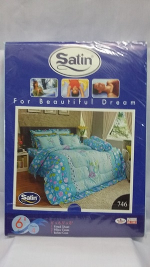 ผ้าปูที่นอนซาติน 6 ฟุต 4 ชิ้น ผลิตจากผ้าฝ้าย 35 % โพลีเอสเตอร์ 65 %