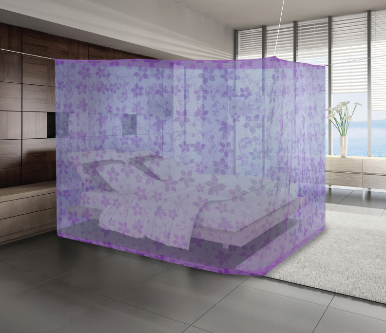 มุ้งตราหัวม้า8ฟุตหลังคาพิมพ์ลายสีม่วง