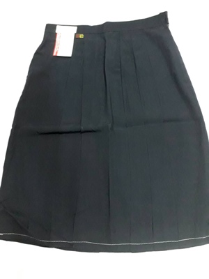 กระโปรงสมอผ้าโทเรสีกรมเข้ม 6 จีบ ผลิตจากโพลีเอสเตอร์ 65 % เรยอน 35 % เพื่อผิวสัมผัสนุ่มนวล สวยงาม รีดง่าย และยังระบายความร้อน ความชื้นได้ดี คงทนอยู่ได้นาน แม้จะผ่านการซักฟอกหลายครั้ง