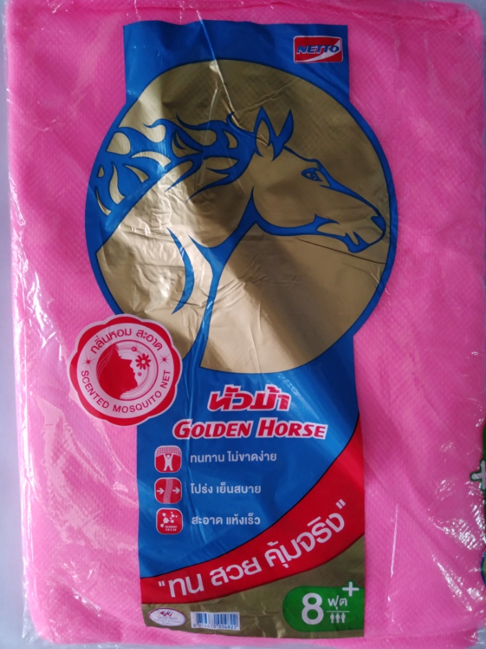 มุ้งกาง 4 หู ตราหัวม้า​ ผ้าเกล็ดปลา​ สีพื้นทั้งหลัง มุ้งคุณภาพจากเน็ตโต้ NETTO