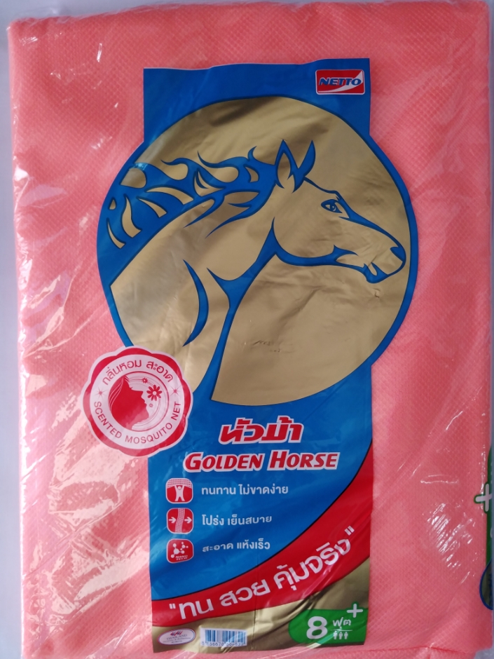 มุ้งกาง 4 หู ตราหัวม้า ผ้าเกล็ดปลา สีพื้นทั้งหลัง มุ้งคุณภาพจากเน็ตโต้ NETTO
