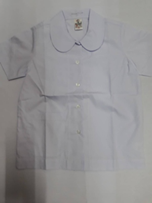 เสื้อคอบัวกลมแขนเรียบกระเป๋าล่างสมอ ผลิตจากโพลีเอสเตอร์ 65 % และค๊อตตอน 35 % ใช้เส้นด้ายเบอร์ 45 มีความหนาแน่น 216 เส้นต่อ 1 ตารางนิ้ว ถือเป็นเนื้อผ้าที่ดีที่สุดสำหรับการตัดเสื้อนักเรียน