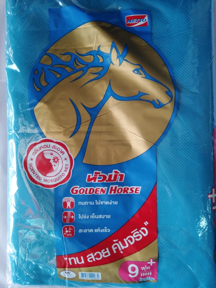 มุ้งกาง 4 หู ตราหัวม้า​ ผ้าเกล็ดปลา​ สีพื้นทั้งหลัง มุ้งคุณภาพจากเน็ตโต้ NETTO