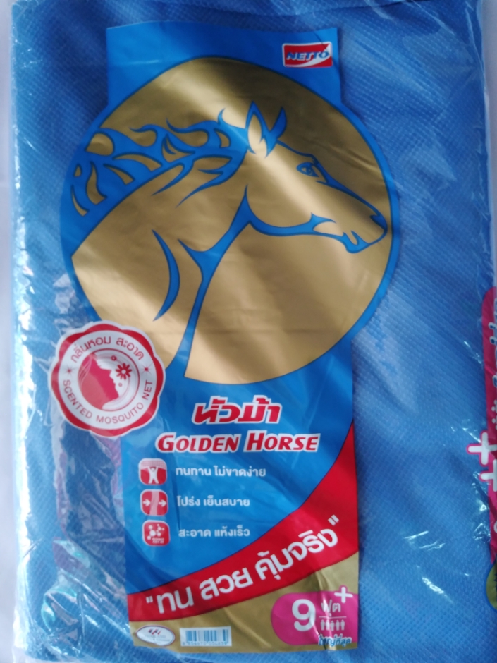 มุ้งกาง 4 หู ตราหัวม้า​ ผ้าเกล็ดปลา​ สีพื้นทั้งหลัง มุ้งคุณภาพจากเน็ตโต้ NETTO