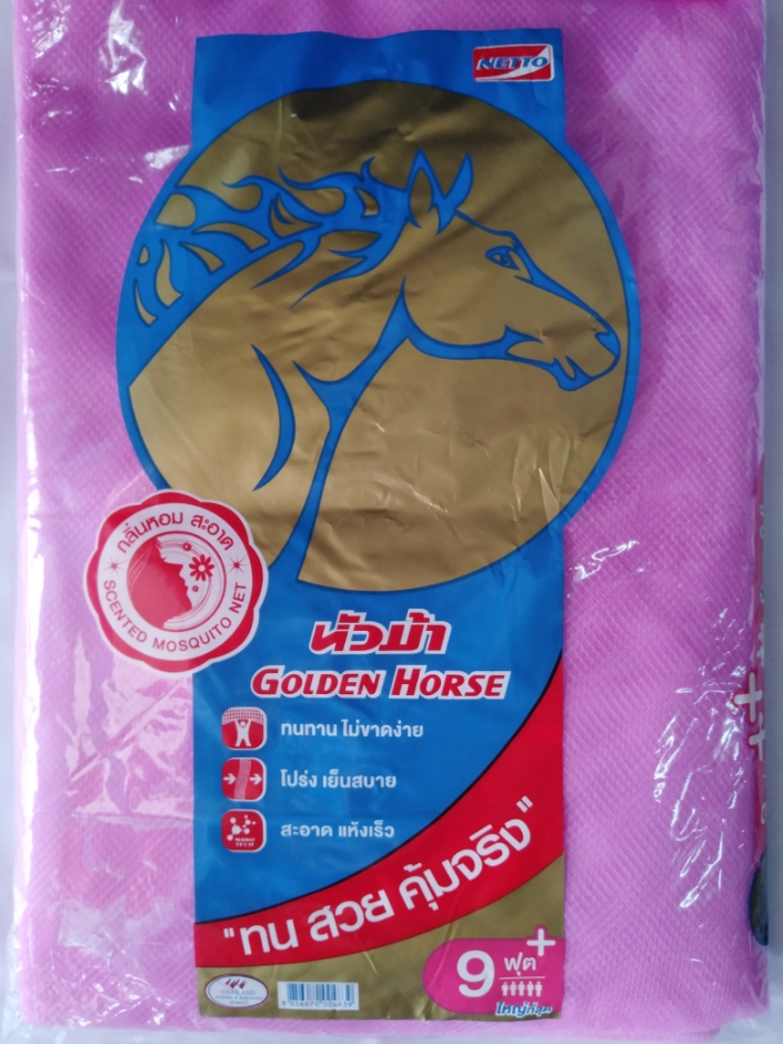 มุ้งกาง 4 หู ตราหัวม้า ผ้าเกล็ดปลา สีพื้นทั้งหลัง มุ้งคุณภาพจากเน็ตโต้ NETTO