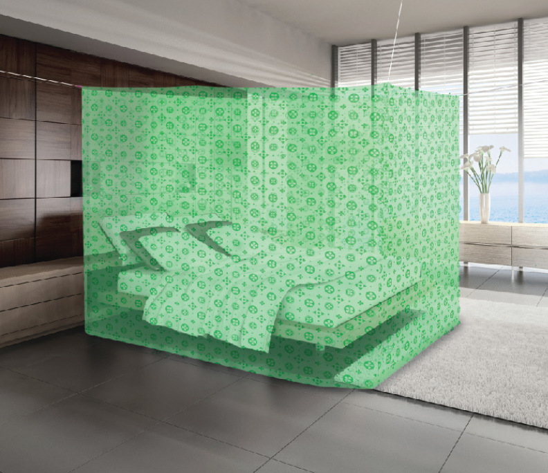มุ้งตราหัวม้า6ฟุตพิมพ์ลายทั้งหลังสีเขียว