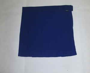 กระโปรงอนุบาลนำสมัยสีน้ำเงินเอวรังดุม ผลิตจากโพลีเอสเตอร์ 65 % และค๊อตตอน 35 %
