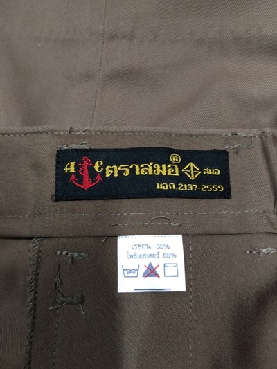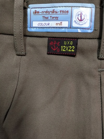 | กางเกงสมอสีกากีผ้าเสริท ยาว 22 นิ้ว |