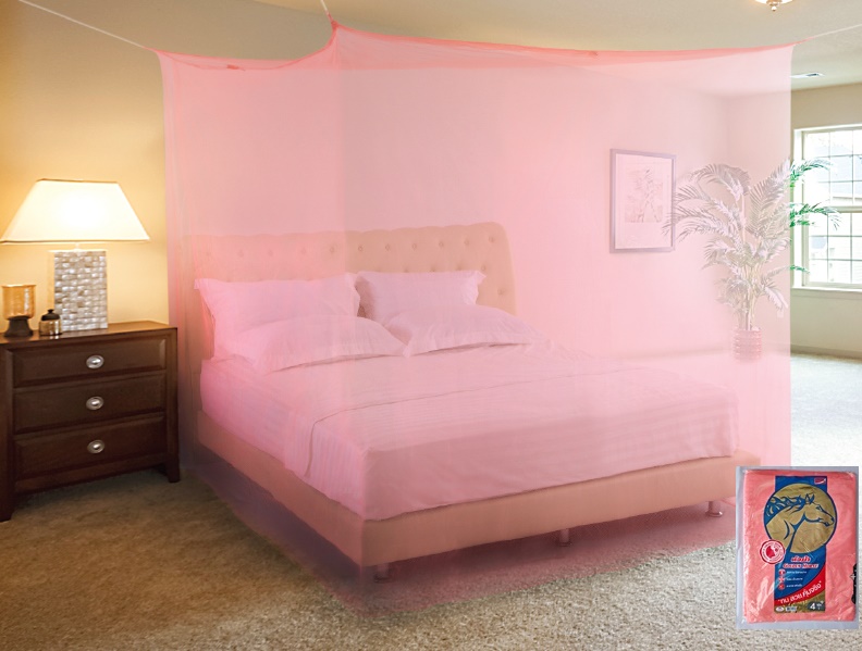 มุ้งกาง 4 หู ตราหัวม้า ผ้าเกล็ดปลา เป็นมุ้งผ้าสี คุณภาพดี