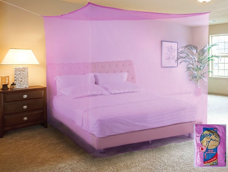 มุ้งตราหัวม้า8ฟุตหลังคาพิมพ์ลายสีชมพู