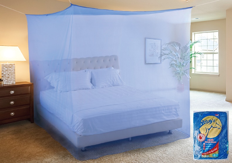 มุ้งกาง 4 หู ตราหัวม้า ผ้าเกล็ดปลา เป็นมุ้งผ้าสี คุณภาพดี